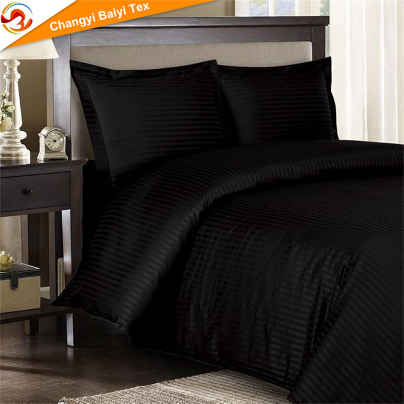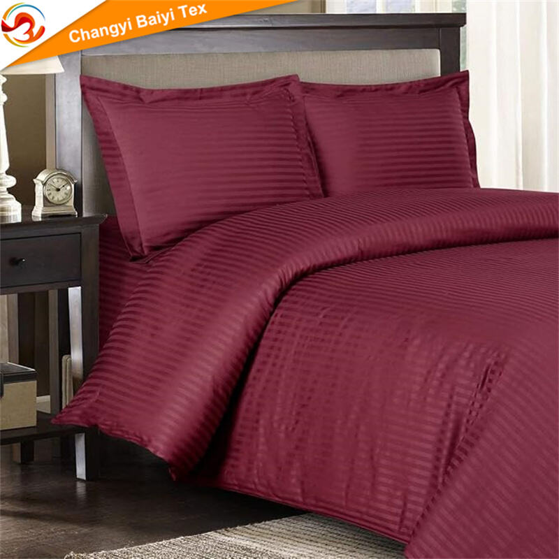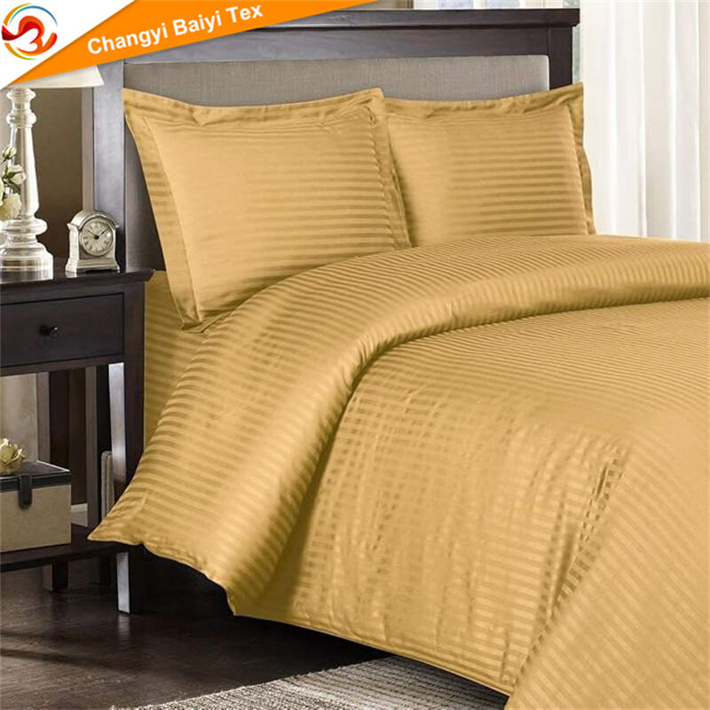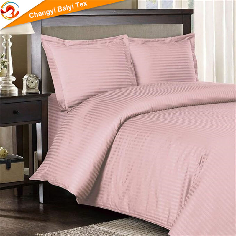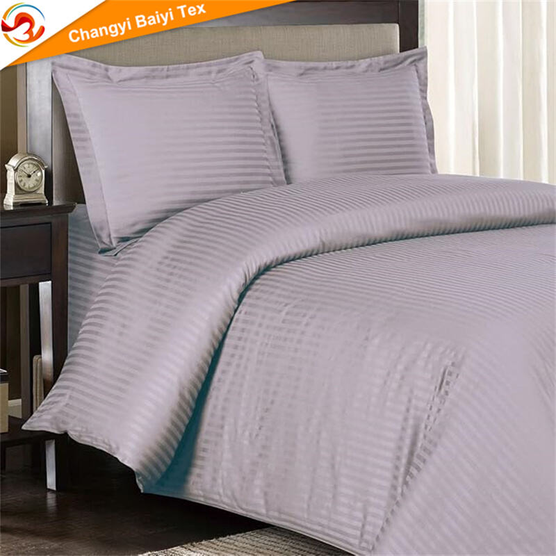 تامین‌کننده ملحفه هتلی از کارخانه چینی OEM/ODM، مجموعه ملحفه ۴ قطعه‌ای نرم از جنس میکرو فایبر رنگرزی شده با طرح خطوط ساده، شامل تشک، کوسن و روپوش ملافه، قابل سفارشی‌سازی برای منزل، تامین‌کننده ملحفه پلی استر ۱۰۰ درصد
