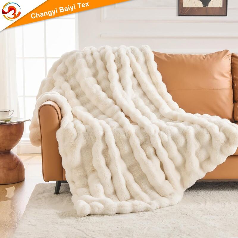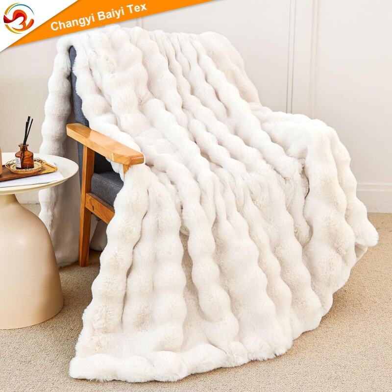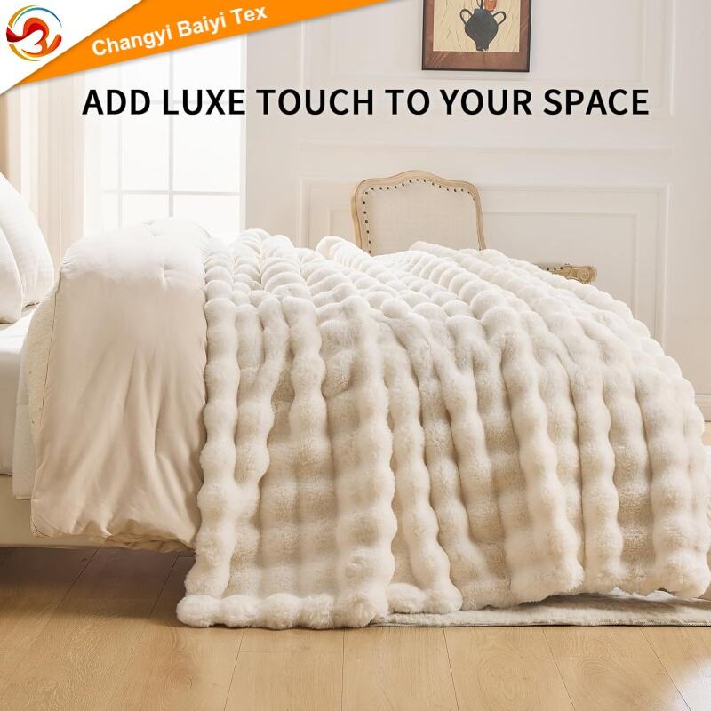 ▲Wyroby premium: Ten koc z imitacji futra królika w bąbelkowym kształcie wykonany jest z nadwyścigowego mikro włókna, co czyni go niezwykle miękkim, delikatnym i puszystym. Zapewnia komfort bez przegrzewania się czy pocenia. Ulepszona obróbka antystatyczna skutecznie redukuje elektryzowanie, zapewniając lepsze wrażenia z użytkowania.